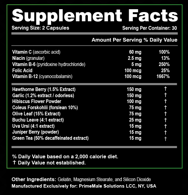 vascular health.Buchu Leaf Extract: A natural diuretic that helps reduce excess fluid retention, supporting healthy blood pressure.